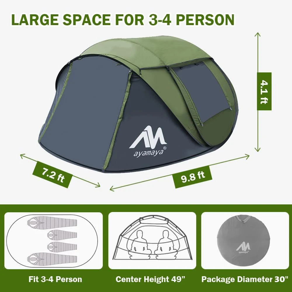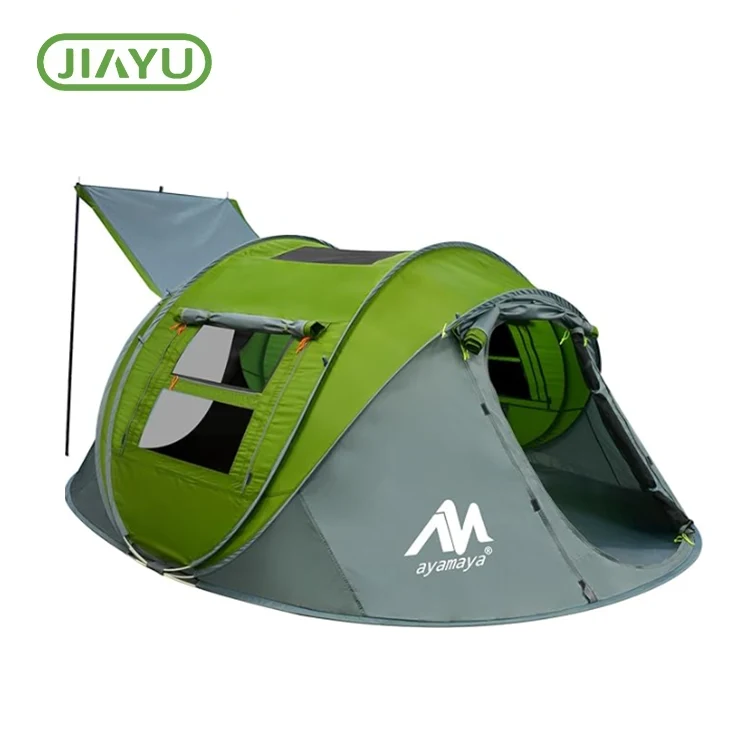 Automatisk hurtigt åbent campingtelt, pop up-teltet har et ovenlysvindue, det er så romantisk for dig at nyde stjernehimlen om natten.. Zhejiang Jiayu Outdoor Products Co., Ltd., Ovenlysvinduet er udstyret med et aftageligt vandtæt regnfluebetræk, ingen bekymringer på regnvejrsdage.