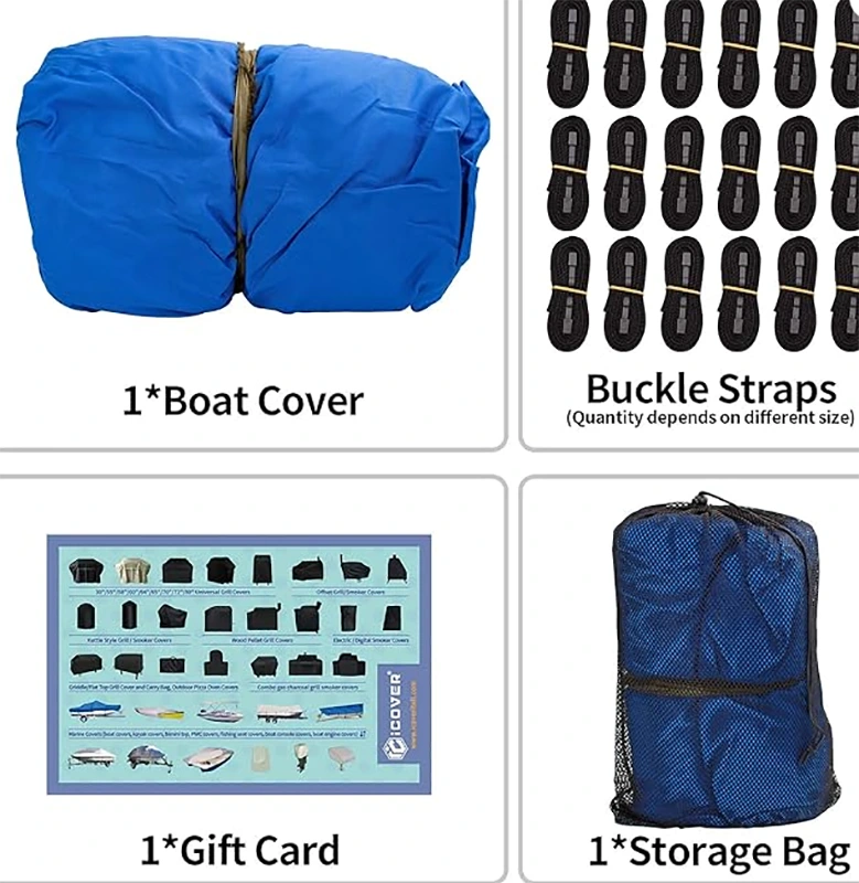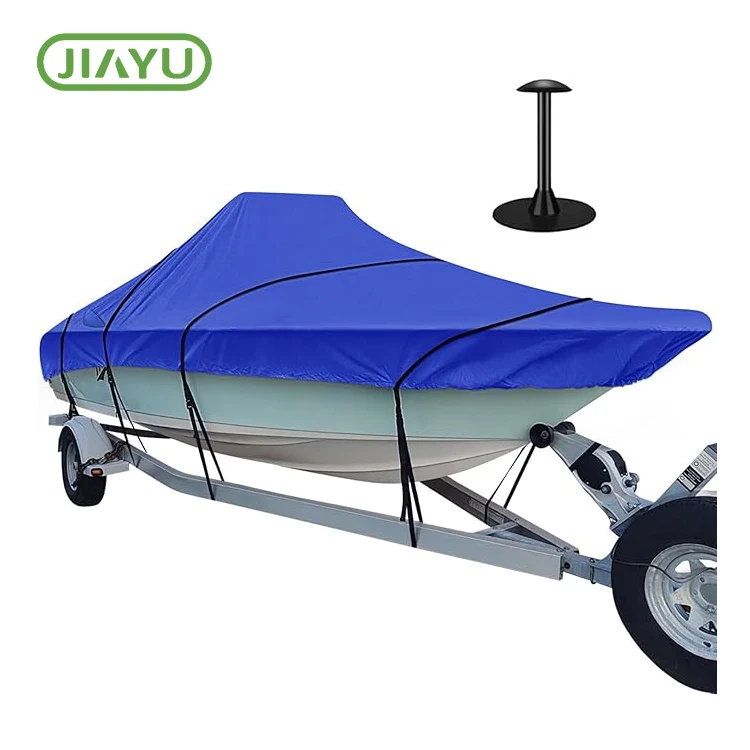 Bjælkebredde Vandtæt bådafdækning Yachtafdækning, trailerbar bådafdækning, 600D Heavy Duty bådafdækning Passer til V-skrog centerkonsol båd 20 fod-22 fod lang og bjælkebredde op til 116 tommer, forrudehøjde op til 30 tommer, bådafdækning støttestang inkluderet.