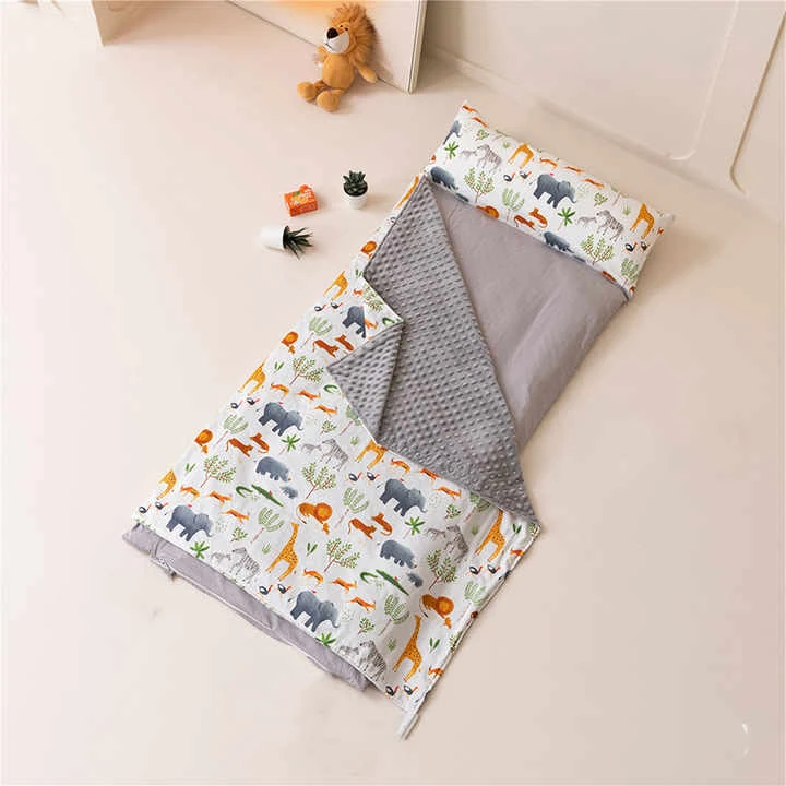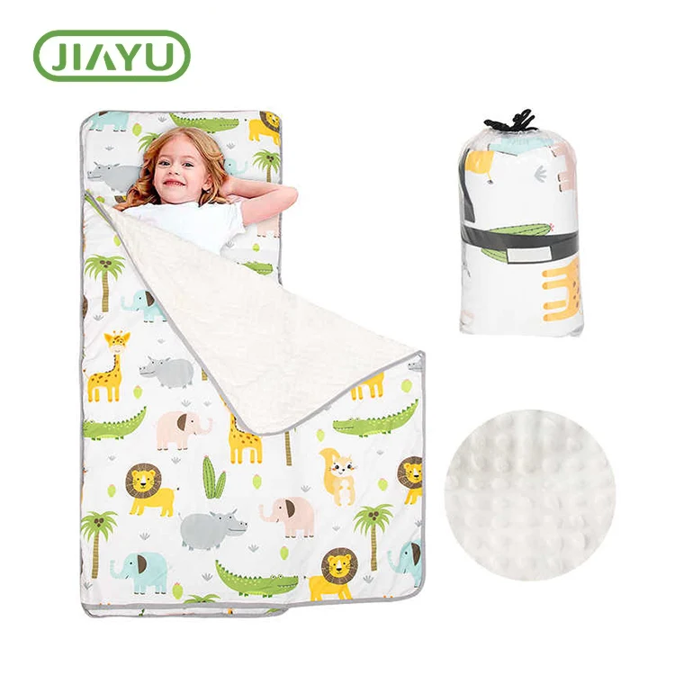 Blue Toddler Camping Nap Bag The Rollup Design gør det muligt for måtten at rejse let såvel som de praktiske fastgørelseslukningsstropper og bæregrebet.