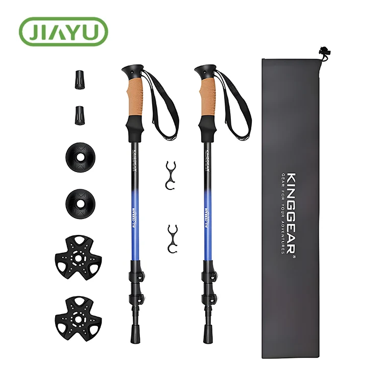 Vandrestang i kulfiber.Lette og kompakte, de er perfekte til rejsende vandrere, backpackere og eventyrere, der har brug for pålideligt udstyr, der er nemt at pakke..Zhejiang Jiayu Outdoor Products Co., Ltd., vores vandrestave inkluderer holdbart tilbehør og wolframcarbidspidser til ethvert terræn. Bæretaske og clips medfølger for nem transport og opbevaring.