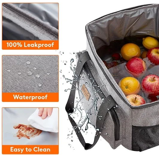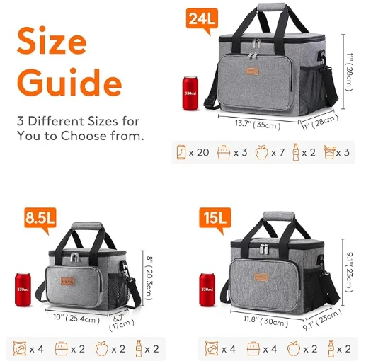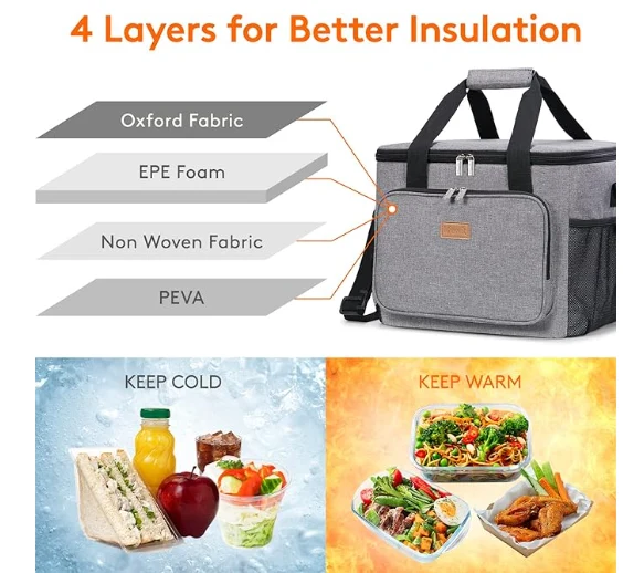 Stor kapacitet: Dimensioner - 13,8 "(35 cm) × 11" (28 cm) × 11 "(28 cm). Den maksimale kapacitet af frokostkasse til voksne er 24L og er rummelig nok til at opbevare 40 dåser af koks (330 ml) eller din frokost såsom sandwich, trip, salat, snacks, drikke