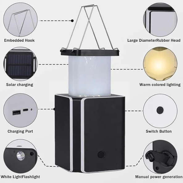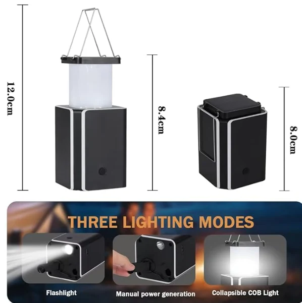 LED solcampinglys, nødcamping-lanterne lys hånd-crank-kraftproduktion. Hvis du ikke har en oplader rundt, og der ikke er nogen sol, er denne håndcrankede generator perfekt til at oplade lys.