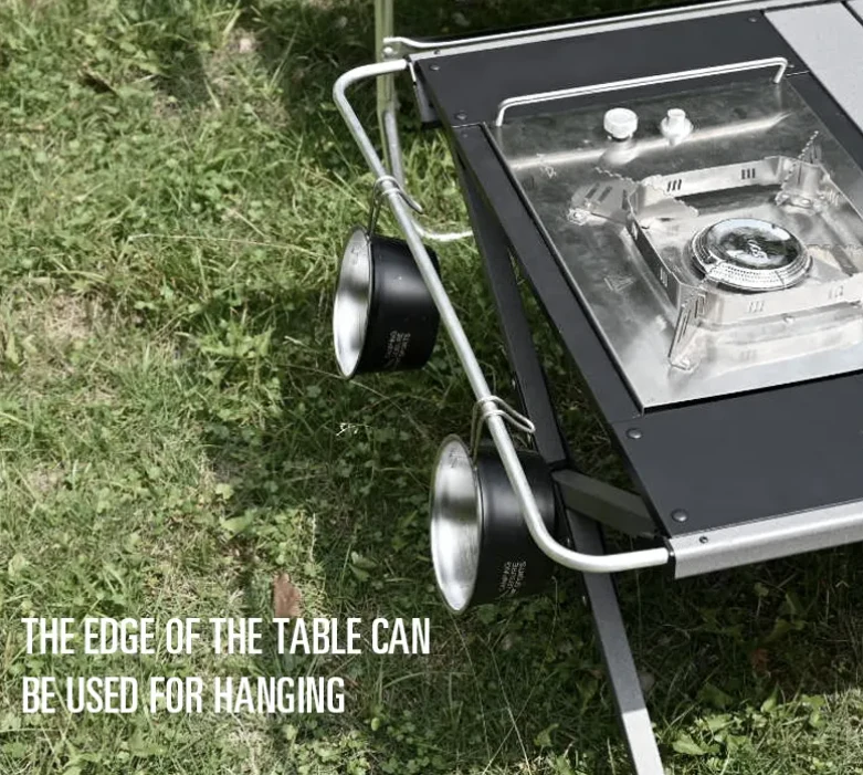 Letvægts foldning af IGT -tabel efter dine behov. Perfekt til camping, grill, udendørs madlavning og mere. Siden af bordet kan bruges til at hænge op og redskaber