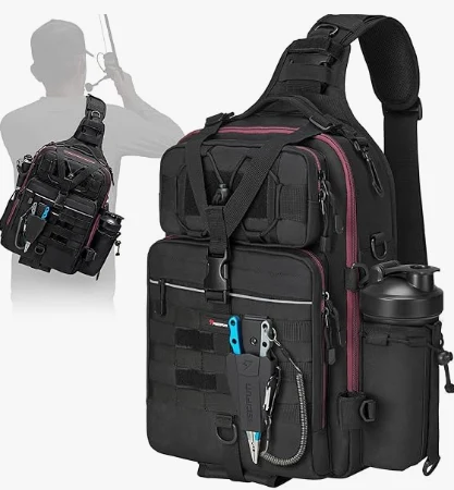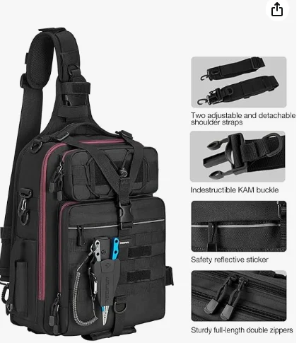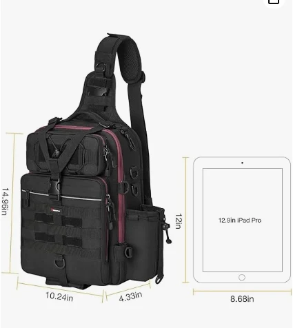 Aftagelige skulderstropper gør det nemt at bruge denne taske som en slyngeskulderpose, rygsæk, håndtaske, brystpose, fisketaklepose eller rejsetaske. Med to stangbælter til at holde dine stænger, kan hovedremlængden udvides op til 51,2 '', mens den tilknyttede stropp kan udvides til 36,2 ''