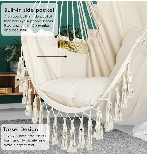 Syning af hængende faldskærm hængekøje. Hængende hængende når som helst og hvor som helst. Bare find en gren, bjælke- eller hængekøje -ramme, stor swingstol til udenfor eller inde .zhejiang Jiayu Outdoor Products Co., Ltd. Du kan nemt meditere eller nyde landskabet. Det er meget velegnet til brug i soveværelser, som rumindretning, balkoner, gårdspladser og haver. Hvis du har brug for et retur, skal du ikke fjerne mærket fra svingstolen