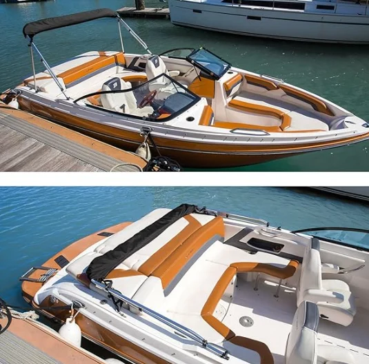 Rustfrit båd Bimini top, lavet af marin klasse 600d polyester lærred med dobbelt PU -belægning, vores opbevaringsstart giver god beskyttelse mod sollys, havvand, regn og støv.